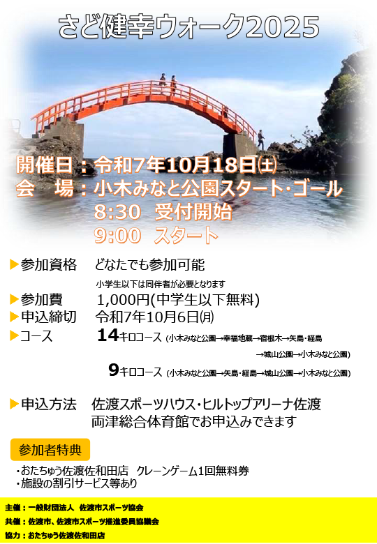 さど健幸ウォーク2025は予定通り開催いたします。