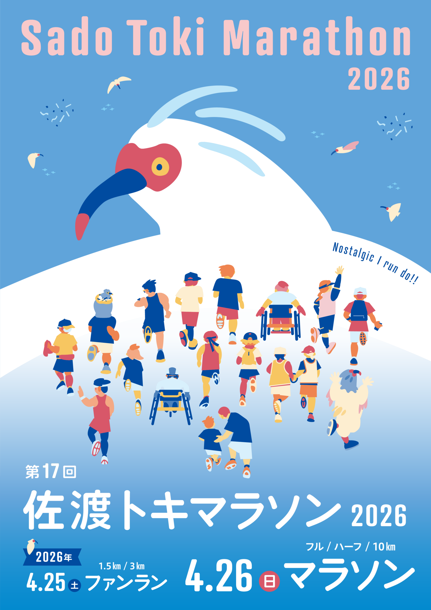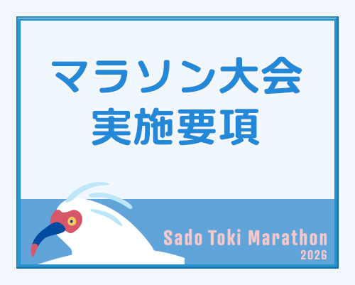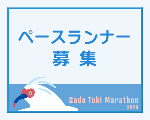 | 2025.11.14 開催日決定 | 佐渡トキマラソン2026は4月26日(日)開催、12月1日(月)エントリー開始です。募集開始まで今しばらくお待ちください。 皆様の参加お待ちしています。 |