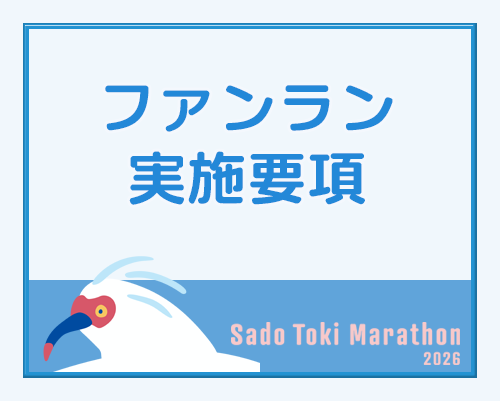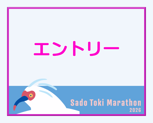| 2025.12.1 エントリー受付開始! | 佐渡トキマラソン2026エントリー開始しました。こちらよりエントリーサイトへお進みください。多くのランナーの参加をお待ちしています。 |