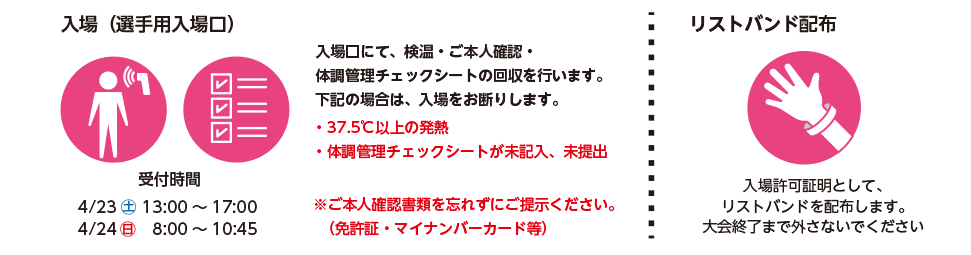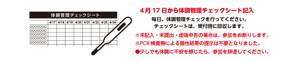 - 大会前後の検温結果や健康状態をチェックシートに記入してください。(4月17日(日)〜5月8日(日)