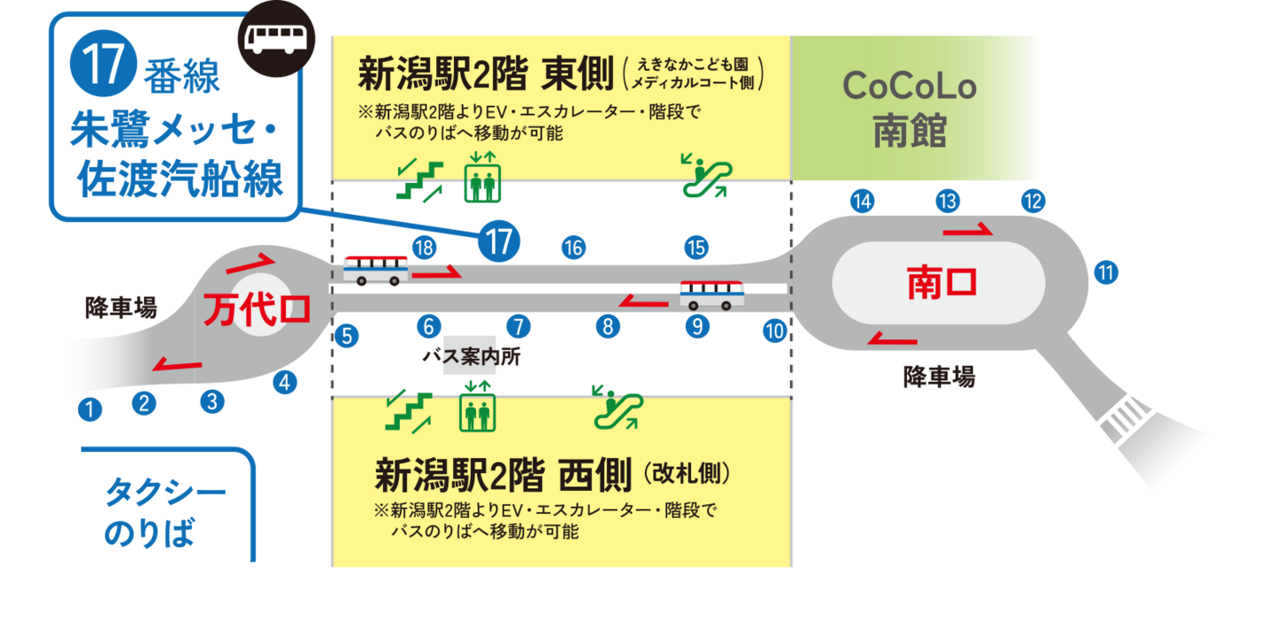 JR新潟駅 新潟駅バスターミナル17番線(朱鷺メッセ・佐渡汽船線) |