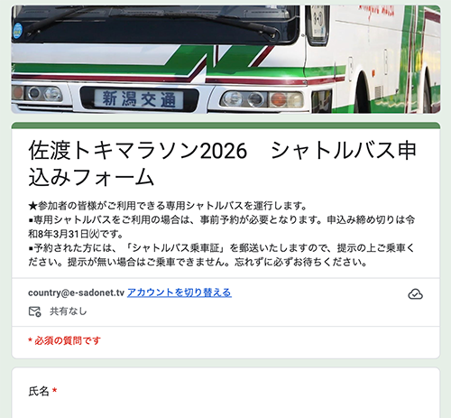 | 相川・佐和田地区宿泊施設 → 大会会場行き | ||