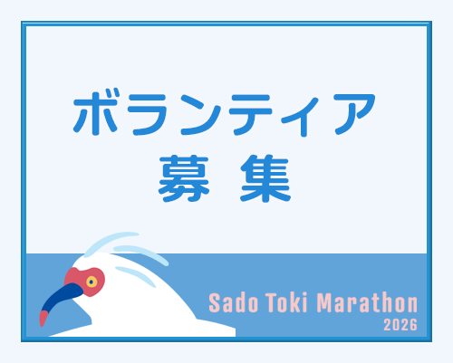 | 2025.12.22 ボランティア募集 | 佐渡トキマラソンの開催には“ボランティアの皆さんの力”が欠かせません。皆さんの笑顔と声援がランナーの力になります。一緒に「大会」を盛り上げていただけるスタッフを募集します! |