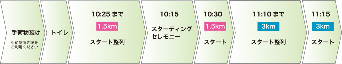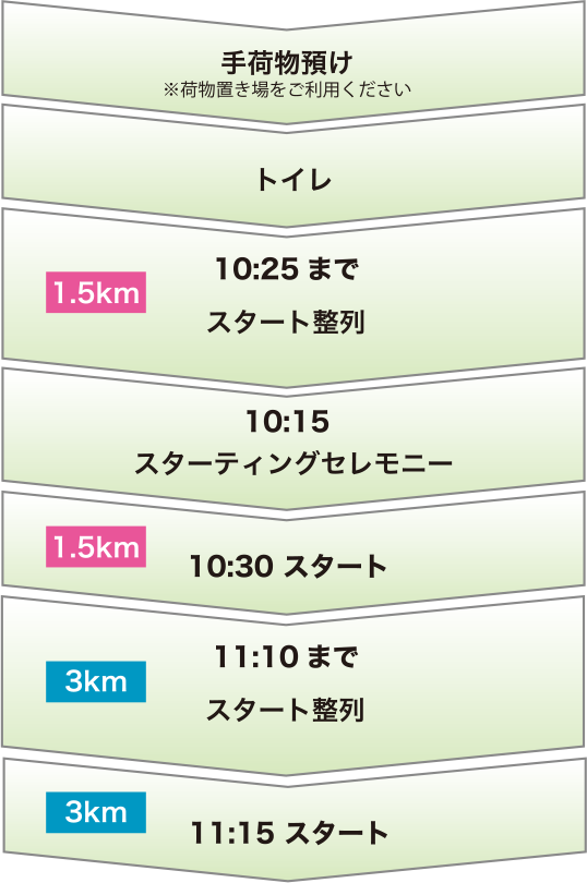 ・手荷物預かりは行っておりませんが、大会本部横テントに荷物置き場を設置しますので、ご利用ください。