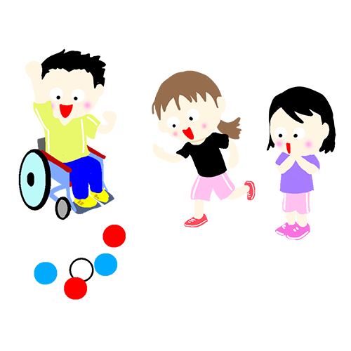 - 赤チームと青チームに分かれ、どれだけボールを的に近づけるかを競う。