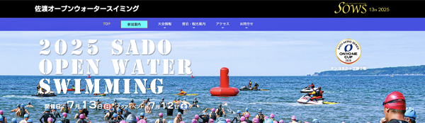 | 2026.2.25 | 2026佐渡オープンウォータースイミング公式サイトリニューアルしました。 参加申込受付は3月1日(日)から5月31日(日)まで、選手の皆様のエントリーお待ちしています。 |