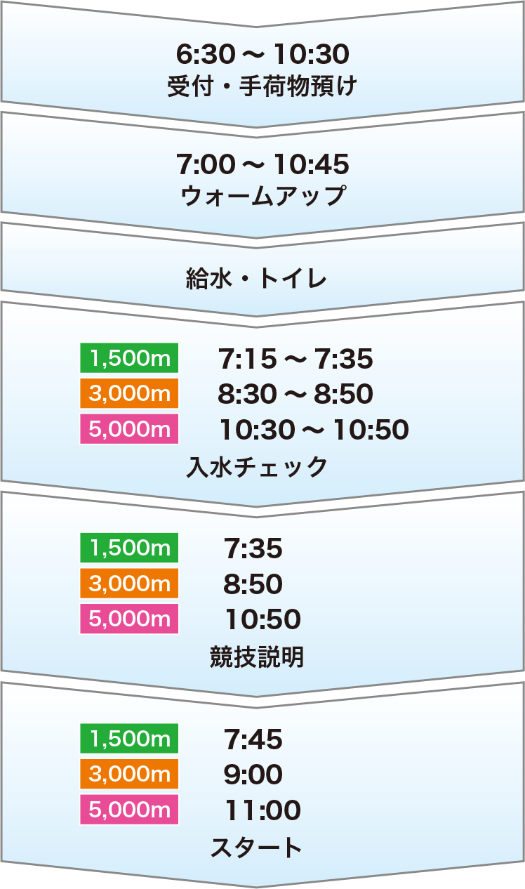 ・複数のカテゴリーにエントリーされている方は、種目ごとにスタート前の受付をお願いします。