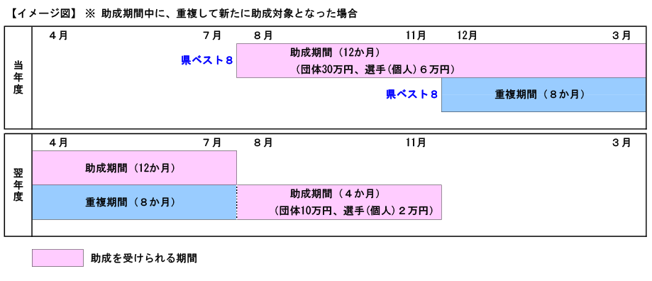 4 その他: 助成期間に複数の大会・種目で助成対象となった場合でも、重複して助成しない。