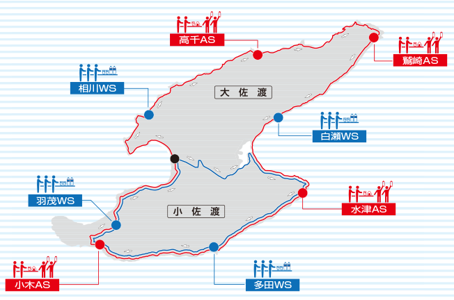 | 両津支所 | 0259-27-2111 | 0259-27-2632 | ●鷲崎AS ●白瀬WS ●水津AS |