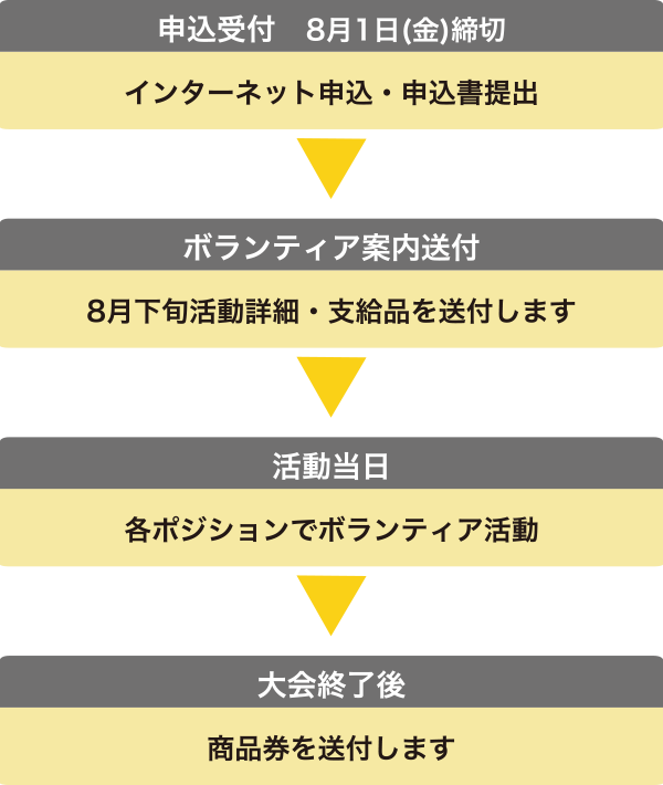 ● ボランティア活動中の映像・写真・記事・記録等のテレビ・新聞・雑誌・インターネット・広報誌・大会誌等への掲載権と肖像権は主催者に属します。