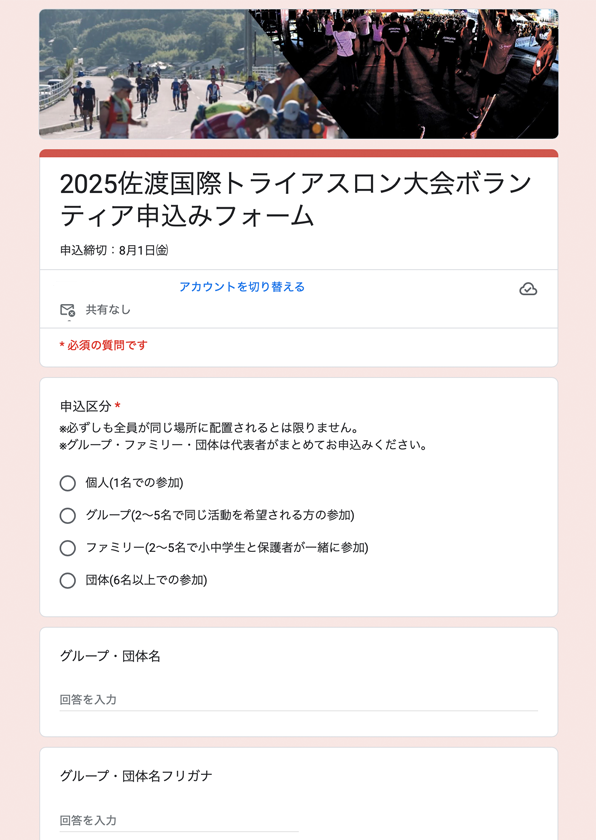 ※グループ・ファミリー・団体は代表者がまとめてお申込みください。