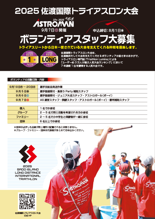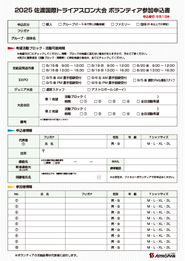 | 7:00~10:00 | 5名 | アストロガール(ボーイ) スタート・フィニッシュ地点アシスタントなど |